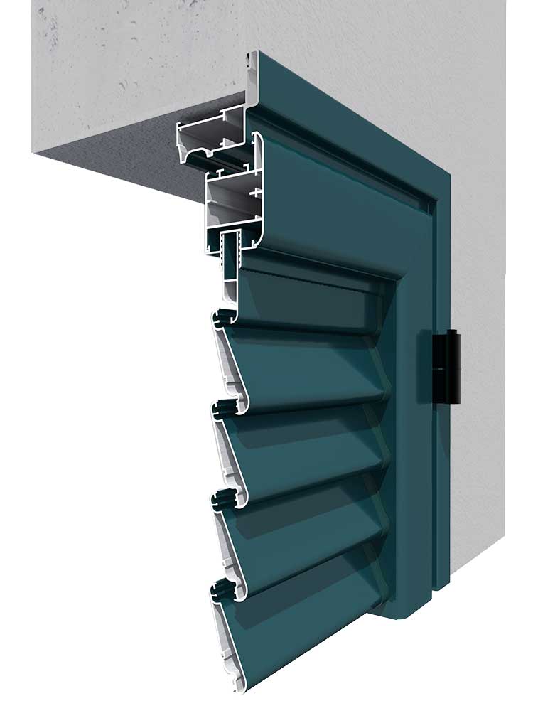 La OSK50 Telaio, anche in versione Security, è una persiana battente con telaio perimetrale e sezione del profilo anta da 50 mm. Ha un sormonto semplice